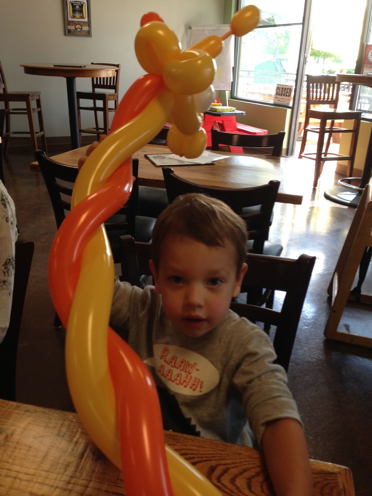 Bryant's balloon giraffe that he got at a Grand Opening we went to!